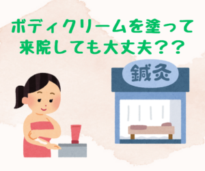 ただ、鍼を刺す場所やお灸をする際にはその場所に消毒をしますのでボディークリームを落とすことになります。ご了承下さい。