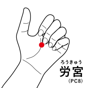 【労宮(ろうきゅう)】…手掌、第2・第3中手骨間、中手指節関節の近位陥凹部