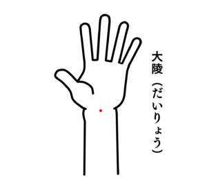 日野市、百草園駅前鍼灸院です。本日は大陵を紹介いたします。 こんにちは 日野市、百草園駅前鍼灸院の中村です。 本日のツボを紹介いたします。 【大陵(だいりょう)】…前腕前面、長掌筋腱と橈側手根屈筋腱の間、手関節横紋上 大陵は、足の厥陰心包経に属するツボです。 動悸や胸痛、手関節障害、正中神経麻痺、頭痛など他にも様々な症状の治療で使用されることがあるツボです。 【日野市 京王線百草園駅 徒歩1分】 〒191-0034東京都日野市落川464 A&U百草園-B ■営業時間 ■定休日…水・日・祝