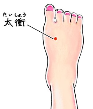 日野市、百草園駅前鍼灸院です。本日は太衝を紹介いたします。 こんにちは 日野市、百草園駅前鍼灸院の中村です。 本日のツボを紹介いたします。 【太衝(たいしょう)】…足背、第1・第2中足骨間、中足骨底接合部遠位の陥凹部、足背動脈拍動部 太衝は、足の厥陰肝経に属するツボです。 頭痛やのぼせ、めまい、不眠、月経痛や月経不順など多くの症状で治療の際に使用されるツボです。 【日野市 京王線百草園駅 徒歩1分】 〒191-0034東京都日野市落川464 A&U百草園-B ■営業時間 ■定休日…水・日・祝