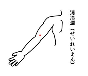 【清冷淵(せいれいえん)】…上腕後面、肘頭と肩峰角を結ぶ線上、肘頭の上方2寸