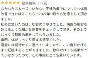 なかなかスムーズにいかない不妊治療中に少しでも体質改善できればとこちらで2022年11月から治療をして頂きました。