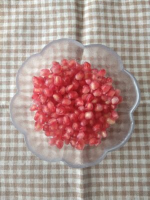 先日、庭のザクロを収穫しました。ザクロジュースが一番のお気に入りですが、まずはそのままいただきました。甘酸っぱくて美味しかったです。