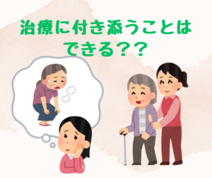 A,もちろん、付き添っていただくことは可能です。どうぞご一緒にご来院ください。ご家族がそばにいらっしゃることで、ご本人もより安心して施術を受けていただけるかと存じます。