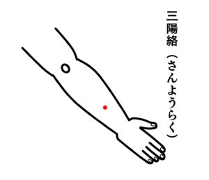 こんにちは 日野市、百草園駅前鍼灸院の中村です。 本日のツボを紹介いたします。 【三陽絡(さんようらく)】…前腕後面、陽池の上4寸、橈骨と尺骨の中点 三陽絡は、足の少陽三焦経に属するツボです。 …