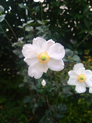 こんにちは。 日野市の百草園駅前鍼灸院、受付の原島です。 庭に「シュウメイギク」が花を咲かせています。名前に「菊」と付きますが、実は菊の仲間ではなく、アネモネの仲間です。英名では「Japanese anem …