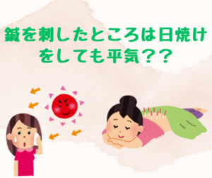 こんにちは 日野市の百草園駅前鍼灸院です。 本日も頂いた質問に回答していきます。 Q,鍼を刺した部分が日焼けしても大丈夫ですか? A,はい、基本的には鍼を刺した部分 …