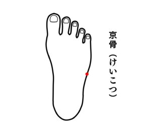 こんにちは 日野市、百草園駅前鍼灸院の中村です。 本日のツボを紹介いたします。 【京骨(けいこつ)】…足外側、第5中足骨粗面の遠位、赤白肉際 京骨は、足の太陽膀胱経に属するツボです。 足背通や …