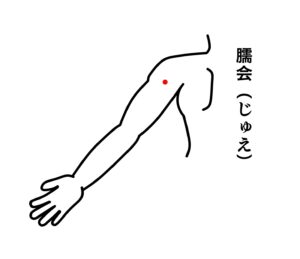 こんにちは 日野市、百草園駅前鍼灸院の中村です。 本日のツボを紹介いたします。 【臑会(じゅえ)】…上腕後面、三角筋の後下縁、肩峰角の下方3寸 臑会は、手の少陽三焦経に属するツボです。 頭痛や …